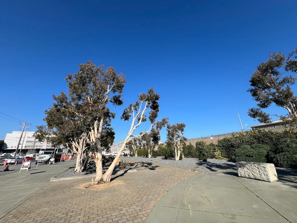 - Native Plantings: California native species along the corridor and throughout the pocket park, supporting pollinators and local ecology while replacing hostile rock landscaping